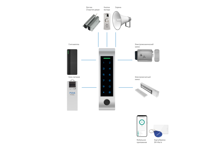 до 100 отпечатков до 900 RFID-ключей/паролей до 500 пользователей в приложении